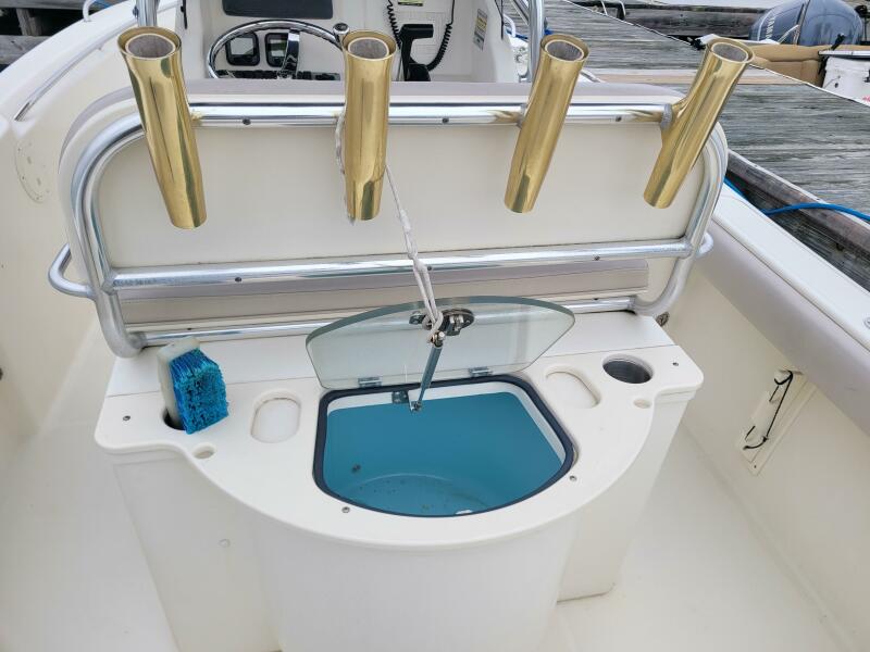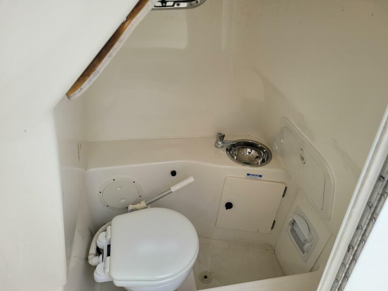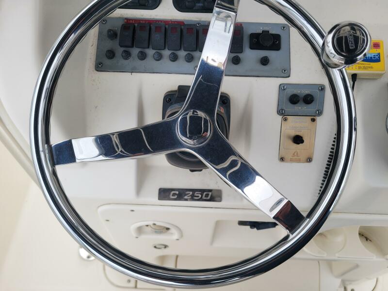 In addition to her primary 250 HP Yamaha she also is equipped with a Yamaha 9.9 Trolling Motor. Her electronics are - Raymarine C97 Chartplotter and Raymarine Ray55 VHF.