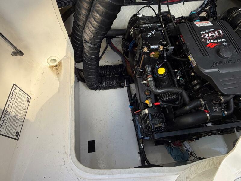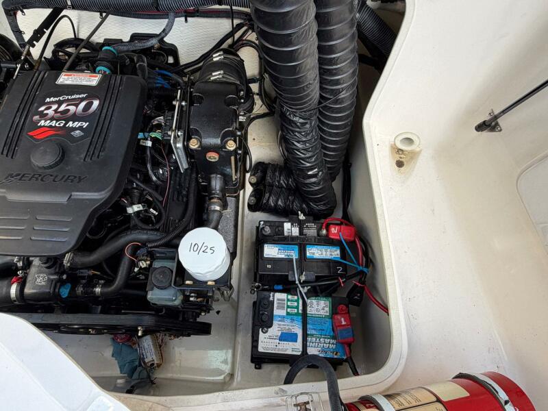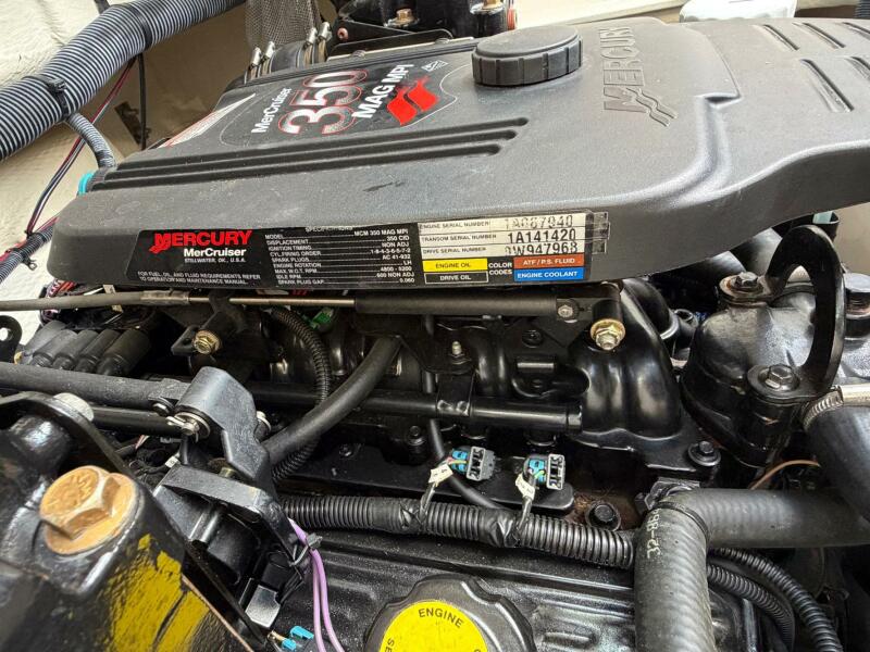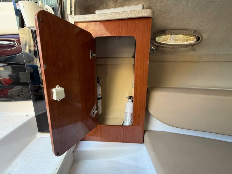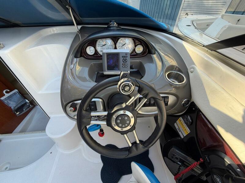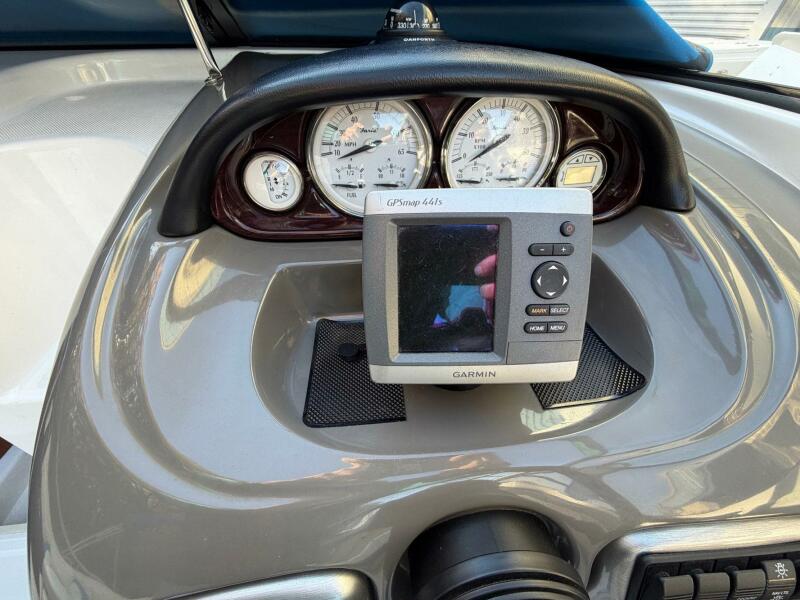 The Regal 2450 cuddy is perfect for those looking to accomplish overnight trips out on the water or simply for those who need a roomy cuddy to entertain. Powered by a MerCruiser 350 MAG MPI with 300HP, she flies along the water with serious power behind her for watersports or just cruising. She comes equipped with a Garmin GPS, Kenwood Stereo system, dual batteries, freshwater system, seating for 10, large swim platform, cockpit canvas cover and bimini top, and more. This difficult to find 24' cuddy has always been stored indoors when not in use and it shows! The blue hull still shines nicely, the cockpit and cabin are super clean, and all of the vinyl is in great shape! This Regal is perfect for an entertaining day or weekend on the bay or a lake!