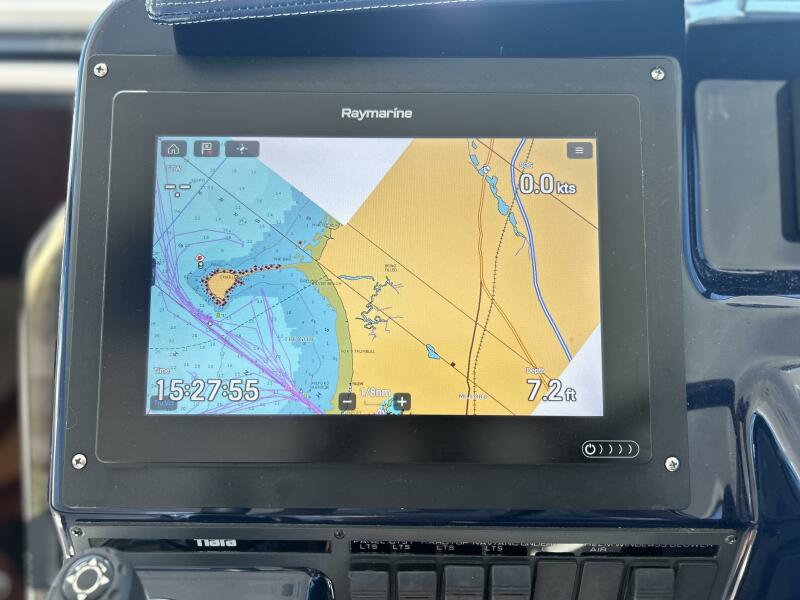 The Swallow is a well-maintained Tiara Sovran 3500. She is powered by twin Volvo IPS 400 Pods with joystick control. Her ride is smooth and dry. The raised cockpit provides excellent visibility all around the vessel. The nearly 13' beam provides an extremely spacious cabin for a 35 footer.