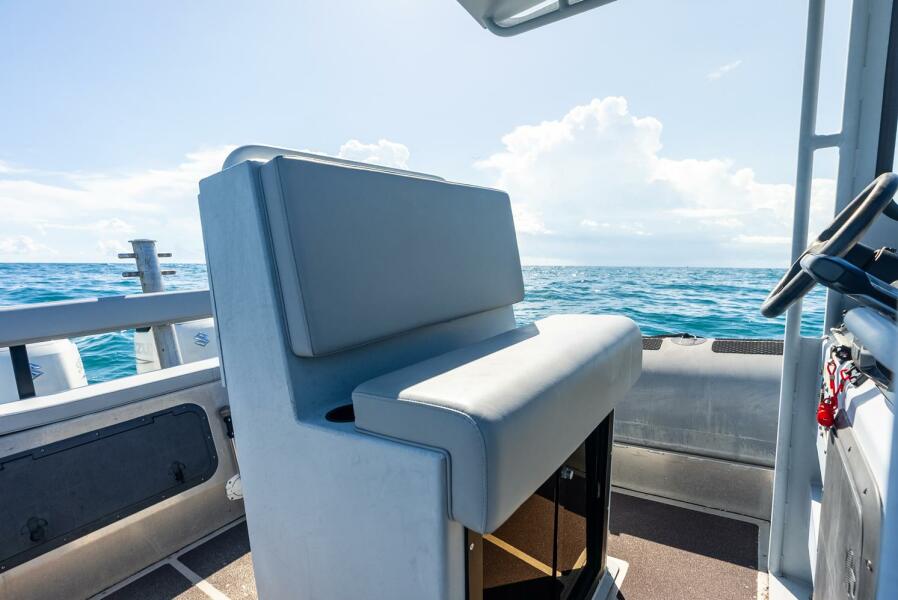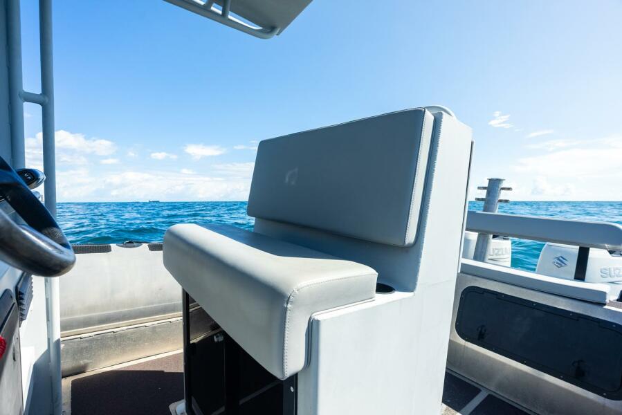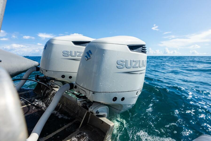 Powered by twin 300 HP Suzuki outboards, it delivers impressive thrust and dependable performance under load. With a generous fuel capacity of 860 liters (227 US gallons), it offers an extended cruising range ideal for long-distance outings.