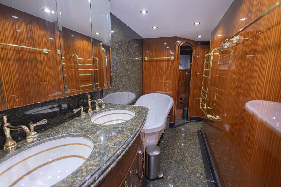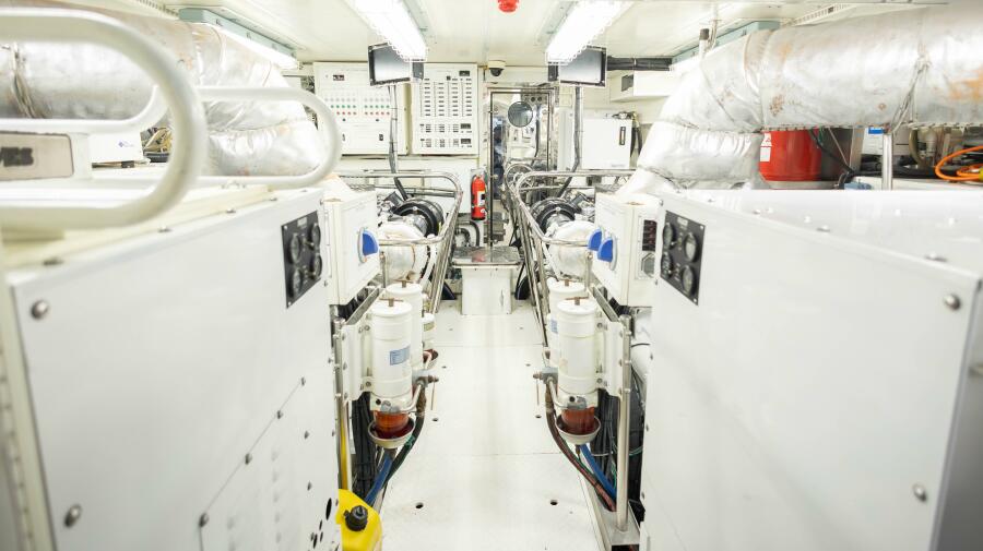 2009 Hargrave 88’ Enclosed Bridge M/Y “OKIE DOKIE” offers an exceptional opportunity to own a like-new yacht at a fraction of replacement cost. Fresh from a 2025 Jarrett Bay full paint and deck refit, with engines rebuilt in 2025, she is truly turnkey. Designed by Yacht Interiors by Shelley, the interior features Gloss Sapeli cabinetry, granite throughout, a spacious main salon, formal dining, and Hargrave’s signature full-beam country-kitchen galley. The enclosed skylounge provides a commanding helm and an ideal entertaining space, while the luxurious master stateroom and well-appointed guest accommodations make her perfect for extended cruising. Equipped with stabilizers, bow and stern thrusters, twin generators, and extensive upgrades throughout, OKIE DOKIE delivers proven Hargrave quality, modern reliability, and outstanding value.