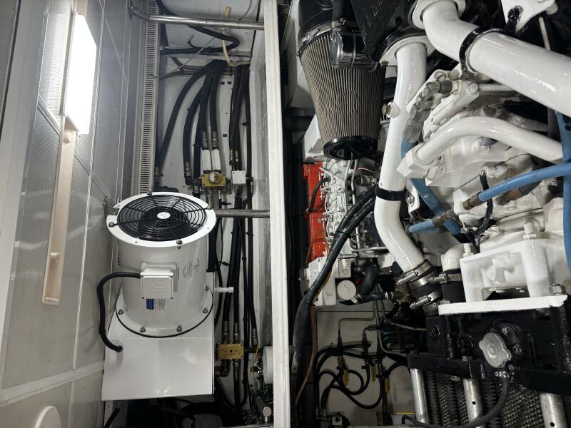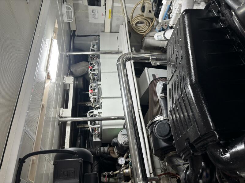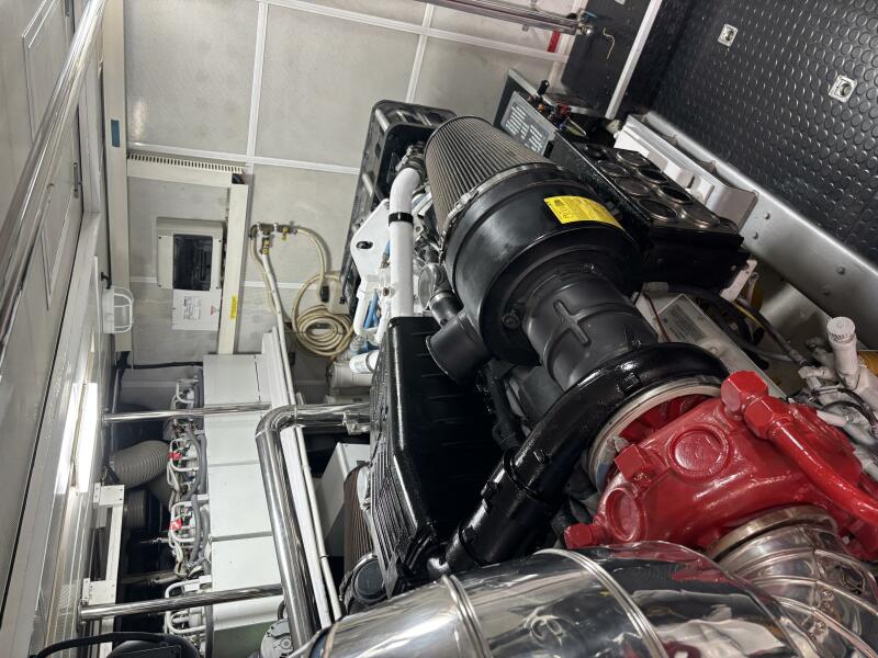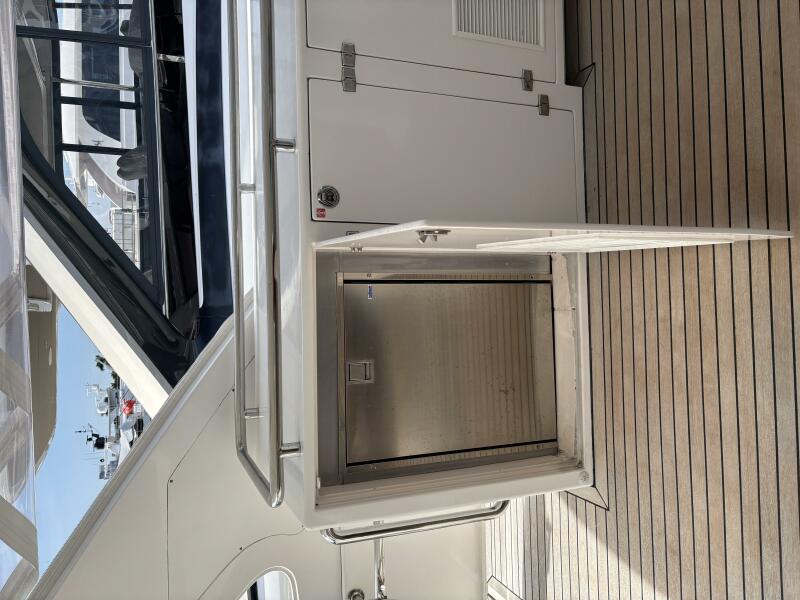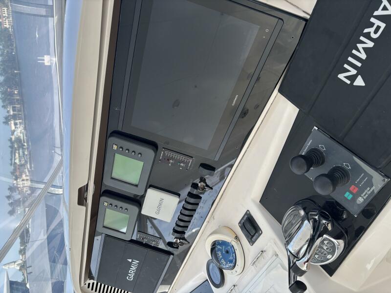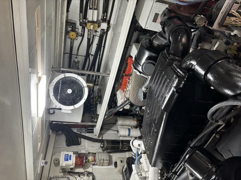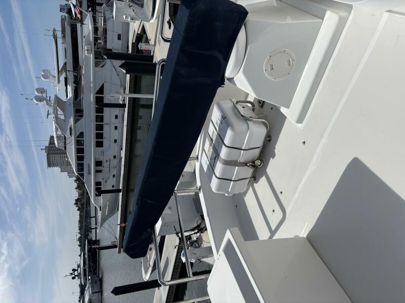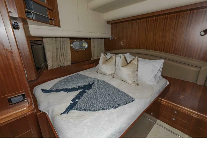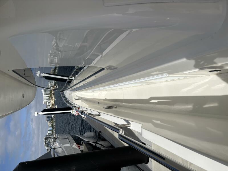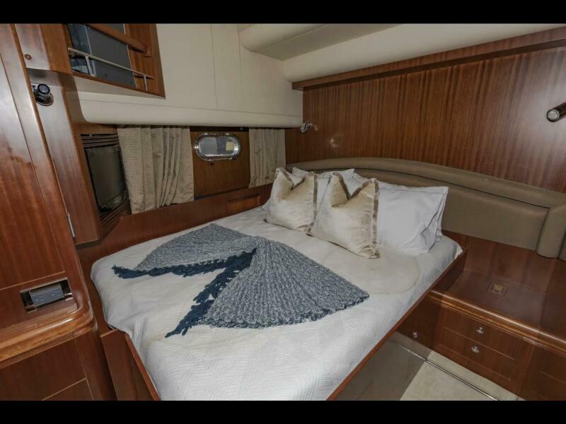 VIAGGIO accommodates six guests in (3) staterooms plus crew cabin aft. She features rich high gloss cherry joinery throughout and is complemented by the soft creams interior furnishings and accents. The full beam master is spacious and features queen-sized berth, large bath w/dual vanities, walk-in closet, vanity/desk and entertainment center. The VIP stateroom is located forward with a queen- sized berth, and a double berth stateroom to starboard with a sliding berth can be converted to twin berths. The two aft staterooms share a well-sized guest bath with a large shower. The spacious salon features built-in settee's, sofa, tables and entertainment center. Forward to starboard is the gourmet galley open to the salon with granite counters and hardwood planked sole. A raised leather dinette with U-shaped leather seating is forward. The aft deck is shaded and has a dining area with teak table and the foredeck has sun pads. The air conditioned flybridge features a full helm station, seating/dining area, wet bar with BBQ and a low profile davit located aft.