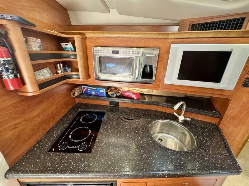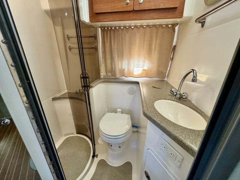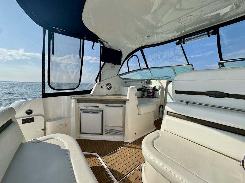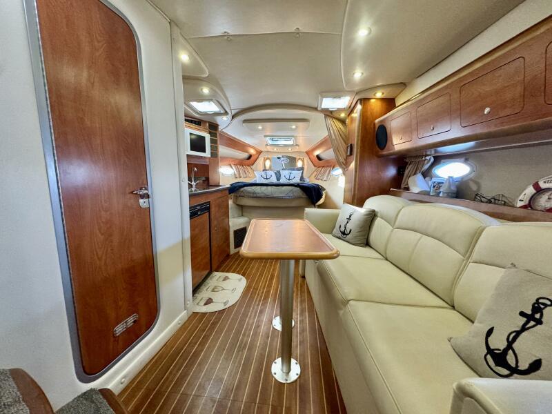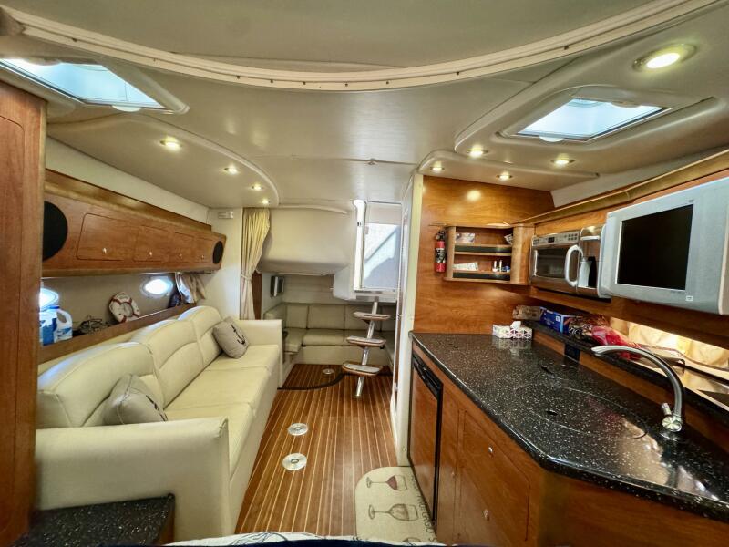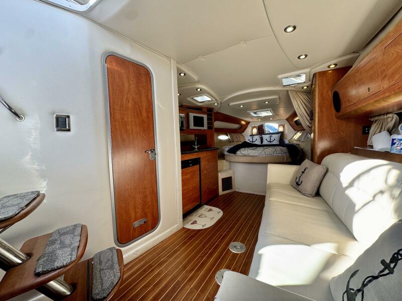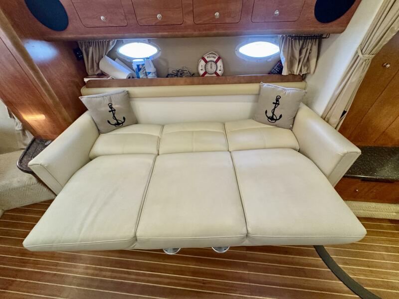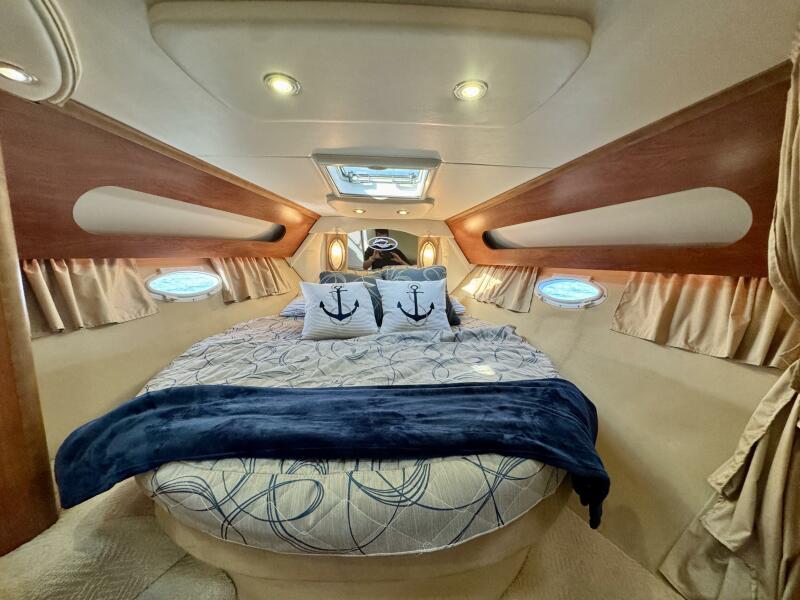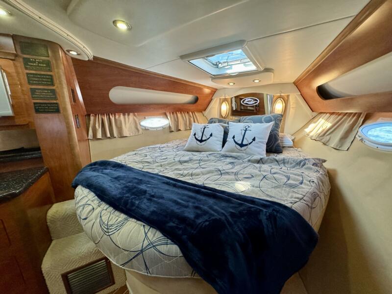 Powered by twin Volvo Penta 5.7L Gi engines with only 880 hours, this boat delivers reliable performance and smooth cruising whether you’re spending the day on the water with family or heading out for an extended weekend getaway. With regular, professional maintenance throughout its life, you can step aboard with confidence knowing this cruiser has been meticulously cared for.