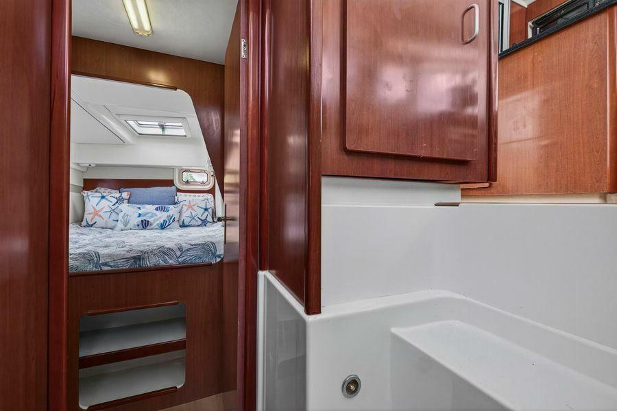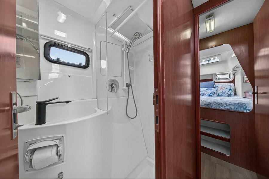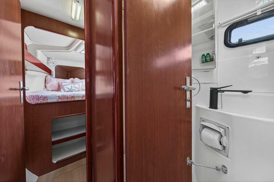 She has been well-kept and upgraded by the current live aboard owner for off-grid cruising. The 4 cabin / 2 head layout allows flexibility in use of space, allowing the ability for max cabins / separate beds, for non-couples onboard, or for storage / work areas.