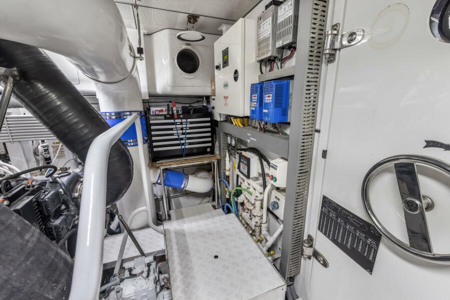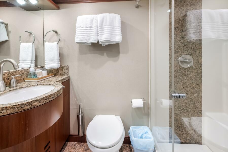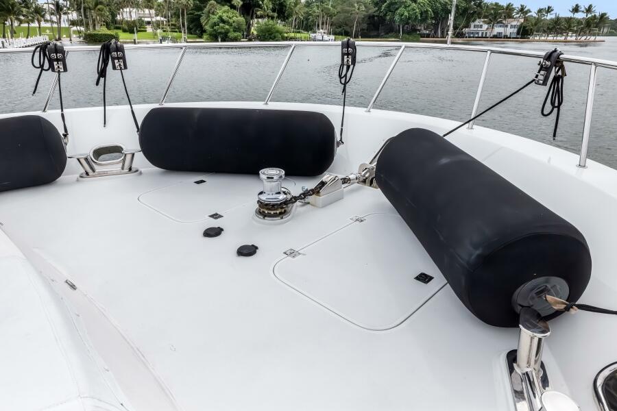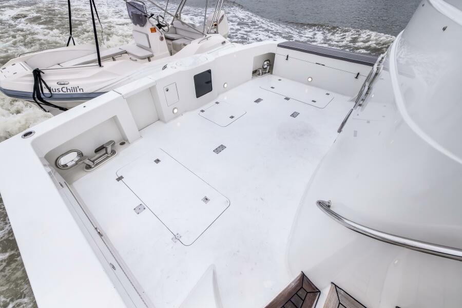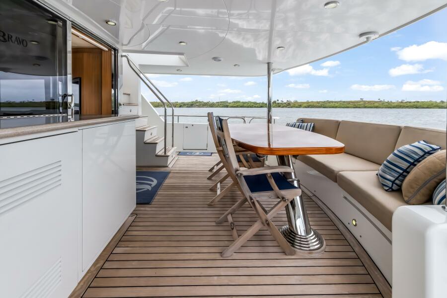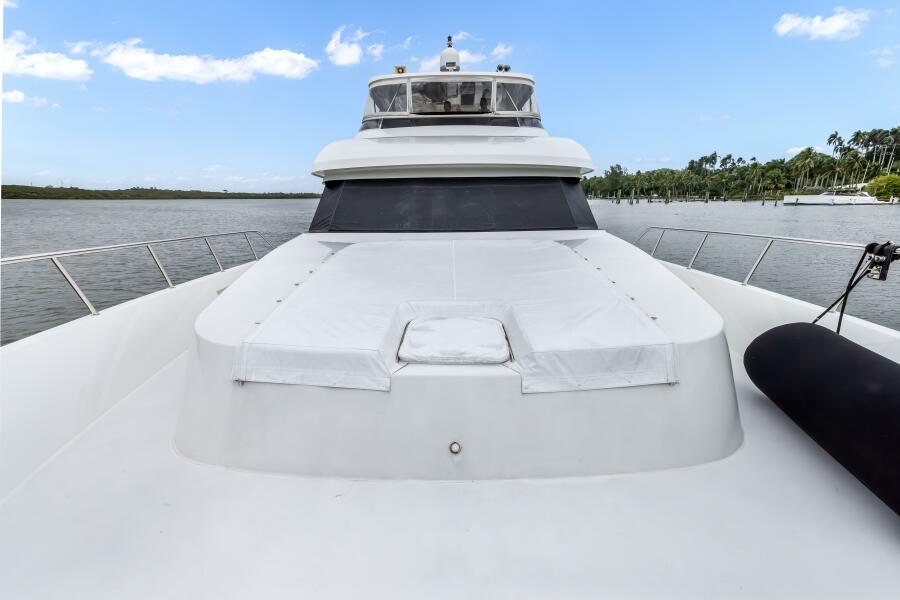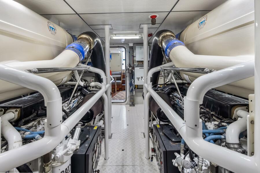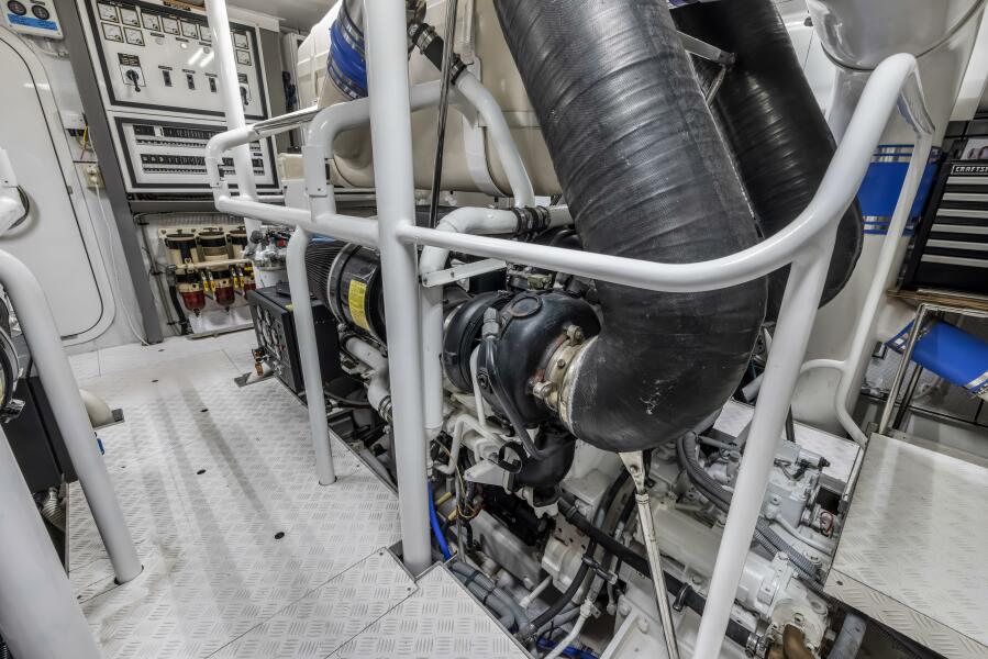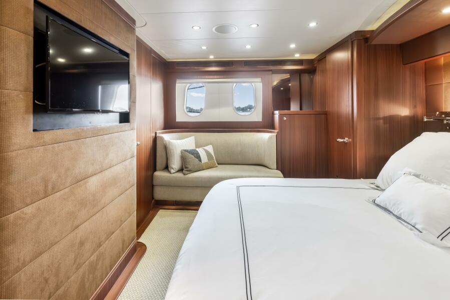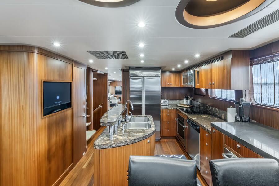 JUS CHILL’N is an impressive 84’ Cheoy Lee Bravo 2012 that has been professionally maintained by captain and crew. She is a must-see vessel in this size/price range due to many unique features like a country kitchen, spacious factory-built cockpit with stowed davit, a TNT lift, wide walkaround side decks, a high volume interior, air-conditioned flybridge with enclosure, and great performance with a 20kt cruise. The vessel features a three-stateroom layout with two full-beam king berths and one VIP queen berth. The crew quarters are located aft with two staterooms and a crew lounge.