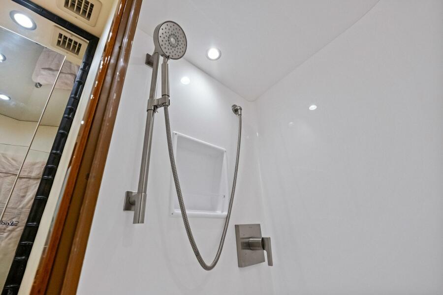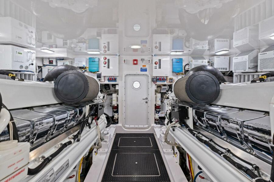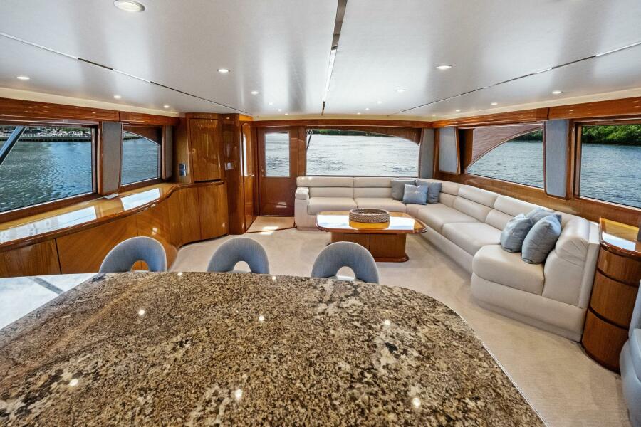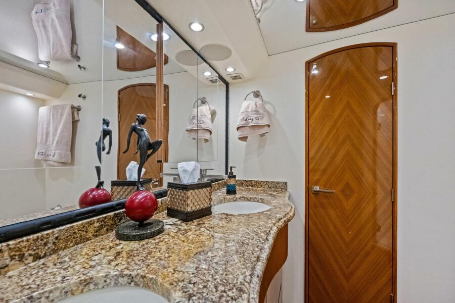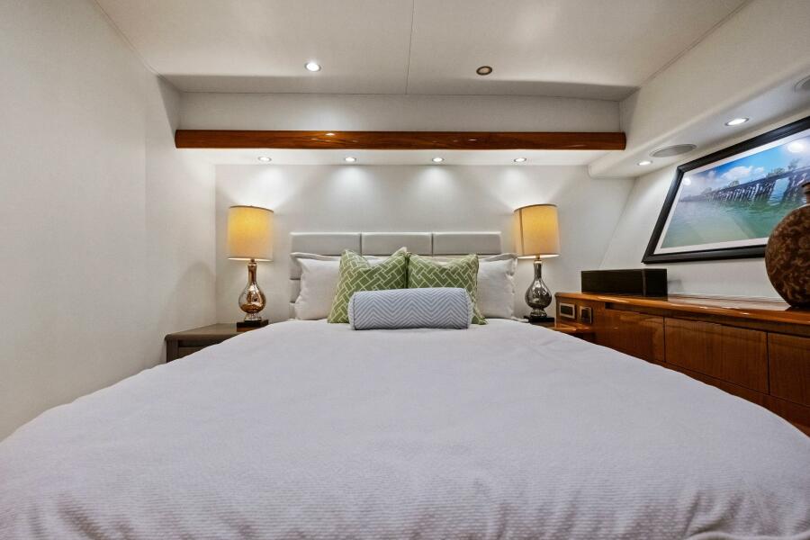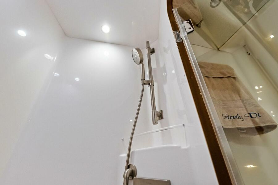 From her striking Bahama blue hull to the Palm Beach Tower, “Lady Di” commands attention at every marina. Powered by twin MTU 16V2000 M94 engines delivering a combined 5200 horsepower, she cruises effortlessly at 30 knots and reaches exhilarating speeds of 37 knots. With a beam of 22’4”, she offers expansive interior volume and unmatched stability.