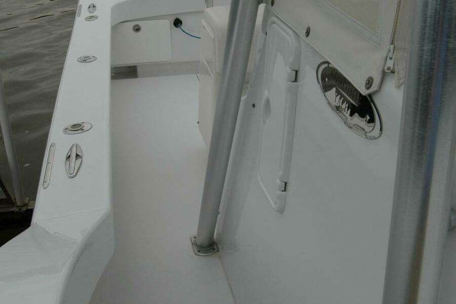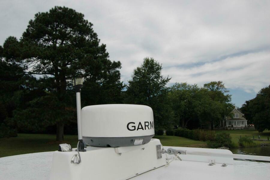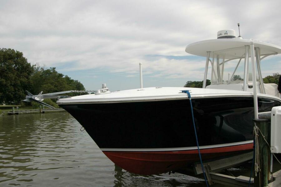 Outfitted with a single Yanmar 315hp. diesel (with only 133 hours at the time of listing) and a SidePower bow thruster, head compartment forward, full hard T-top, a large console, and dual Garmin MFDs, she offers a number of features normally reserved for larger vessels.