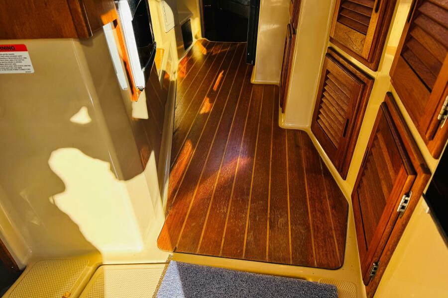 The interior layout of the R-31 features two staterooms - one large island berth forward with en-suite head and a midship berth and day head. Those who are familiar with Ranger Tugs will recognize the galley layout and lower helm station that maximize interior space. A starboard side door provides easy access from the helm to the side decks so crew can get to the bow for line handling.