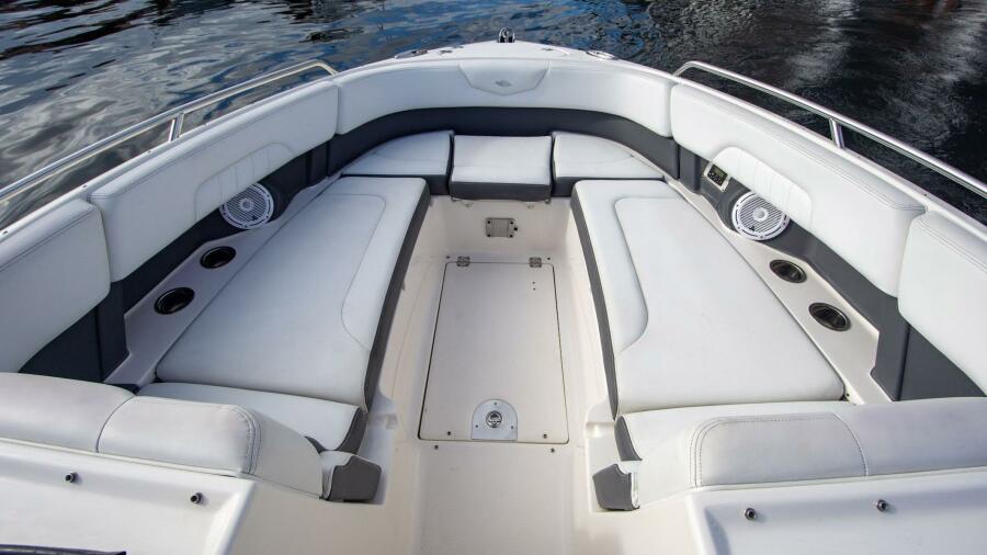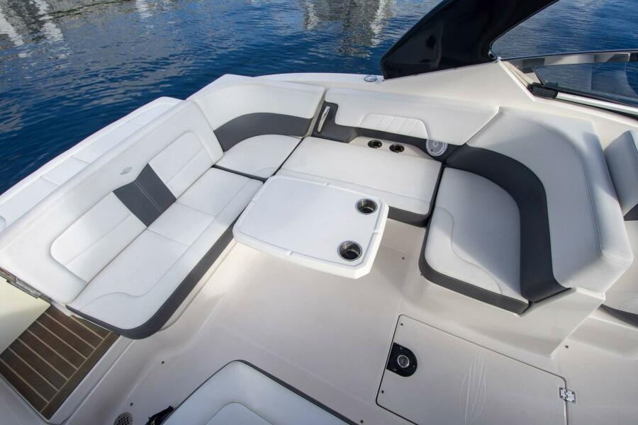 The 307 SSX is a performance bowrider designed for day boating and entertaining, with an emphasis on open seating and social areas rather than overnight accommodations. Storage areas, including a large in-floor ski locker and compartments under seats, are the primary use of the remaining internal space.