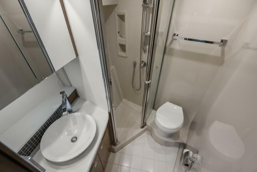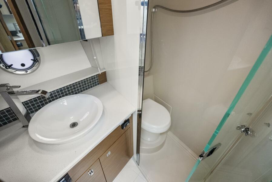 The Cruisers Yachts 45 Cantius offers an ideal layout for entertaining and extended cruising, featuring a spacious single-level salon and helm area with wraparound windows for panoramic visibility, a full galley with modern appliances, and an aft cockpit that seamlessly opens to the salon through large sliding glass doors. Below deck, you’ll find two generous staterooms and two full heads, providing comfortable accommodations for family or guests.