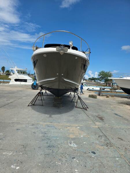 This rare Express-Style Cruiser combines the sleek performance of twin Mercury Verado outboards with the comfort and space of a luxury express yacht. The wide-set outboard configuration and bow thruster make docking effortless — perfect for both seasoned captains and weekend cruisers.