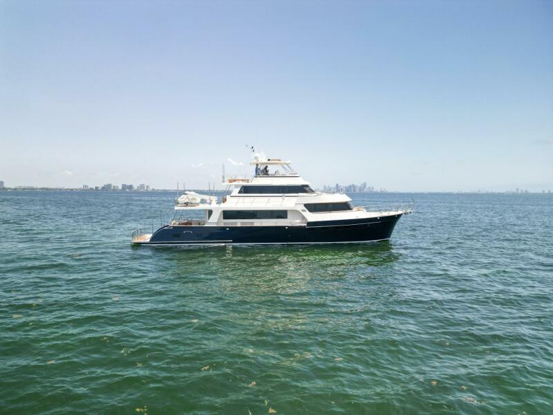 Introducing “FOMO”!!! The 2015 80E Marlow Explorer Command Bridge, with Skybridge — a stunning example of timeless craftsmanship, cutting-edge engineering, and luxurious design. This beautifully maintained yacht combines the elegance and performance Marlow is known for, with the added versatility of both a fully enclosed Command Bridge, and an upgraded open Skybridge, perfect for cruising or entertaining in any weather conditions. With her spacious layout, exceptional attention to detail, and powerful yet efficient performance with C-32 1800hp engines, she offers the perfect platform for extended cruising or elegant coastal adventures. Equipped with a wireless yacht controller, she can easily be handled by only 2 people but has crew space for 4. Her 4-stateroom layout also provides an abundance of space for family and friends to join the journey.
