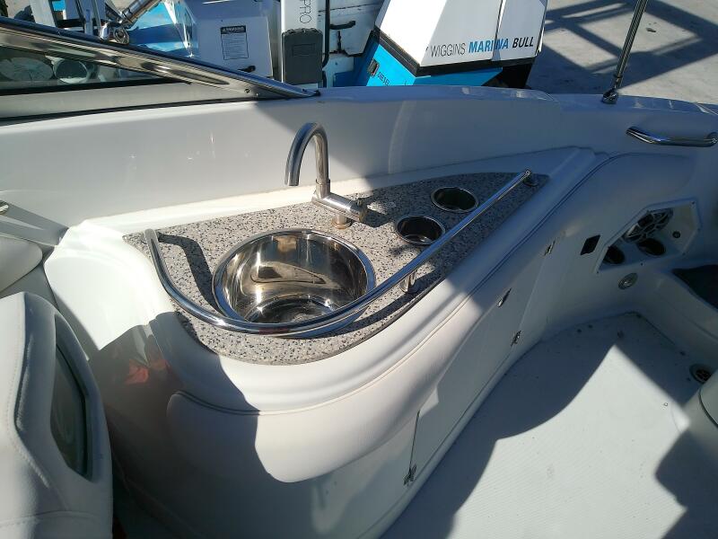 Powered by a robust 300 hp Yamaha F300XCA outboard engine, this boat reaches cruising speeds of 32 mph and can achieve a maximum hull speed of 45 mph, making it ideal for thrilling outings. The boat accommodates up to 12 passengers, providing ample space for gatherings and relaxation.