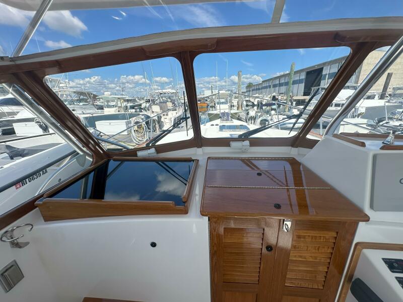 A REAL CLEAN VESSEL TWIN VOLVO 225 HP D-4 DIESEL POWER-- WITH 302 HOURS-- HARDTOP WITH ENCLOSURE--- FULL ELECTRONICS INCLUDING FLIR NIGHT VISION The new Fortier 30 is an honest boat for fishing and more extended cruising. A proven design by Eldridge-McInnis, she is an outstanding fiberglass boat. Her design and construction make the Fortier 30 comfortable in any weather. The molded in keel and spray rails offer exceptional stability and gives the boat a soft, dry entry into the water. The construction of the Fortier 30 is unique to the industry in that experienced craftsmen have laid layers of fiberglass over a Core-Cell foam core. The result is a very quiet ride, while insulating her against the contrasting cold water temperatures and warm air temperature. The stringers run from bulkhead to transom. The quality of materials and workmanship make the Fortier 30's the stiffest hull in her class. The Fortier 30, like it's little sister the Fortier 26, and its bigger brother the Fortier 33, is a combination of both boats. The new Fortier 30 has a large cockpit, approximately the same size as the Fortier 33. The redesigned, opening port windows adds classic Down East looks similar to the iconic Fortier 26. Whether your goal is fishing or cruising or both, the large open cockpit lends itself to customizing in order to satisfy any owner's individual needs!