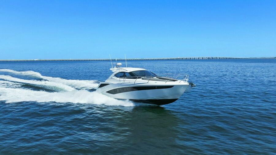 Step aboard this stunning 2017 Galeon 385 HTS, a semi-enclosed sport yacht built for both performance and comfort. With its sleek lines, full glass sunroof, sweeping hull-length windows, and thoughtful layout, this model strikes the perfect balance between elegance and function. This boat is actually 44' LOA with Volvo Penta D6 inboard engines and stern drives.