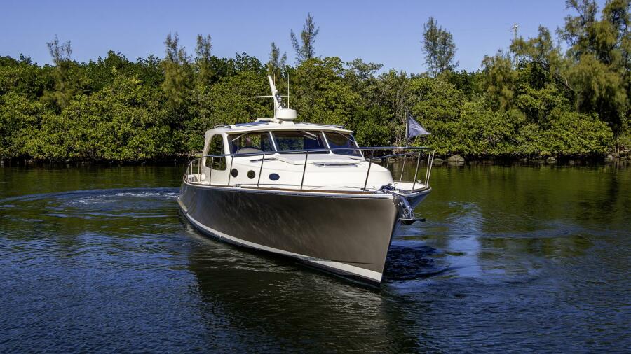 The 42 Palm Beach 2017 Motor Yacht is powered by twin Volvo IPS 600 diesel engines, each offering 435 hp with joystick docking for easy maneuvering. It also features an optional fixed sun awning, beautifully covering the teak cockpit, and comes fully equipped with all the luxury, performance, comfort, and efficiency you'd expect from Palm Beach Motor Yachts.