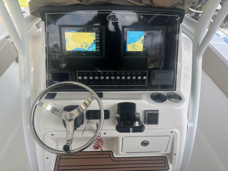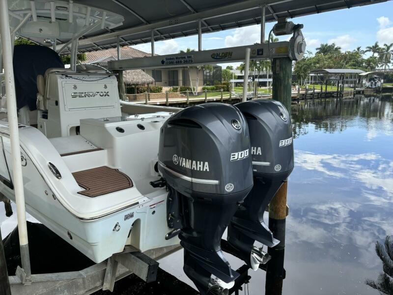 Very well maintained, Lift kept, 2017 Sea Fox 288 Commander, a remarkable center console boat that combines performance and style. With an overall length of 28 feet, this vessel features a robust fiberglass hull designed in a deep Vee shape, ensuring stability and smooth navigation through various water conditions. Powered by twin Yamaha 300 outboard engines, each boasting 300 horsepower and 950 hours of use, this boat promises exhilarating speed and reliability. The thoughtful design includes a well-appointed head, enhancing comfort during your outings. Ideal for both fishing and leisurely cruising, the Sea Fox 288 Commander is equipped for adventure. Its layout allows for easy movement around the deck, making it perfect for entertaining guests or reeling in the big catch. Experience the perfect blend of functionality and elegance with this exceptional boat, ready to create unforgettable memories on the water.