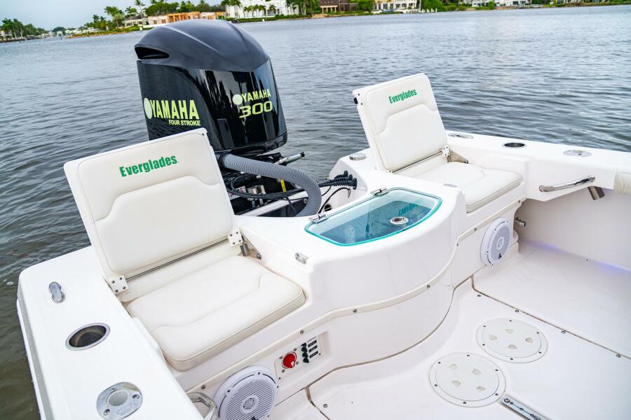 This beautiful garage stored Everglades 243cc and trailer combo is ready for its new owner. With only 295 total hours, a recent Yamaha service including full lower service, new batteries, jack actuators, and trim tilt actuators, all she needs is a full tank. Known not only as one of the pioneer models in the world of Hybrid Bay Boats, the 243cc has truly made a name for itself with its ride quality when the wind picks up compared to many competitors. Famous for their patented Rapid Molded Construction Process (RAMCAP), in which a pre-molded, high-density foam core fits precisely between an Everglades hull and liner, this boat is as solid as it comes.Trailer is included with sale.