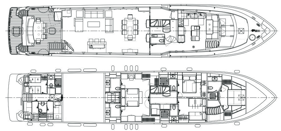On every deck level – the flybridge deck, the main deck, and the lower cabin deck it’s just really big in all the right places with over 3,500 sq. ft. of space.