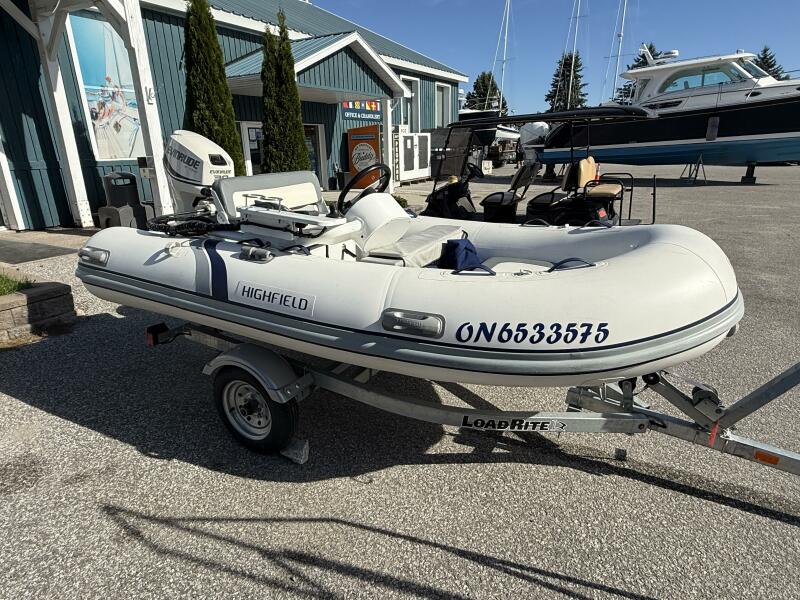 2018 Highfield CL340 Console — A versatile and lightweight rigid inflatable with an aluminum hull, side console, and seating for multiple passengers. Ideal as a tender or small runabout, offering easy handling, durable construction, and efficient performance.