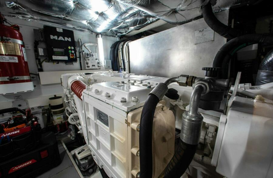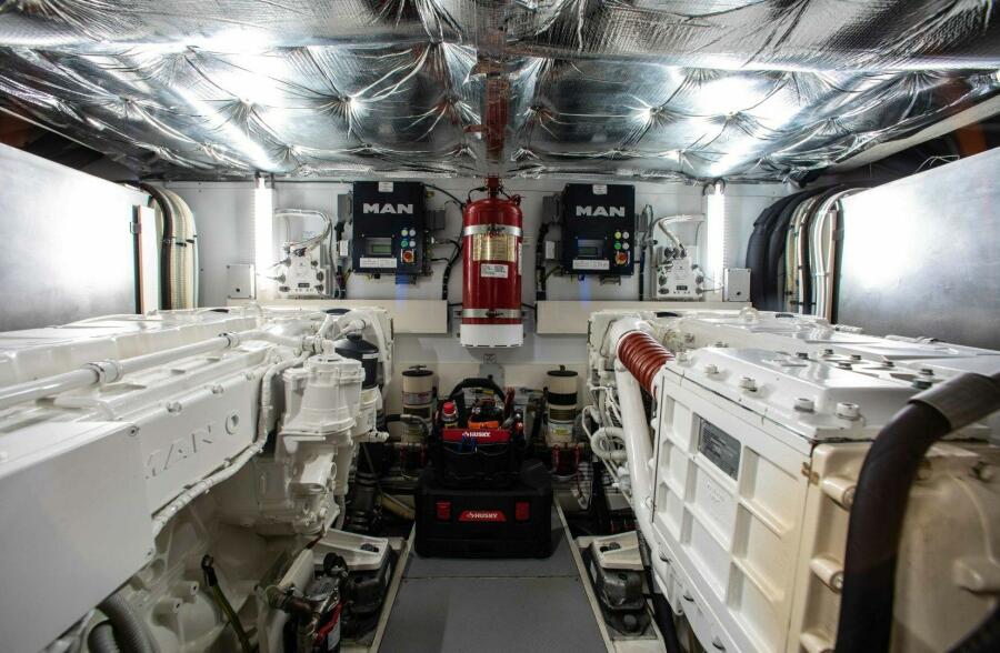 Pull handles in the engine room (engine and generator shut down, activation of fire extinguishing system)