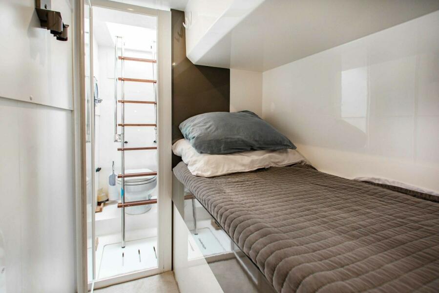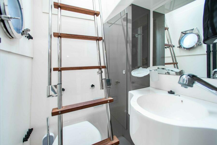 Access to the storage area (crew cabin) through stainless steel and teak steps