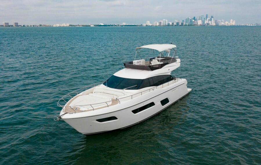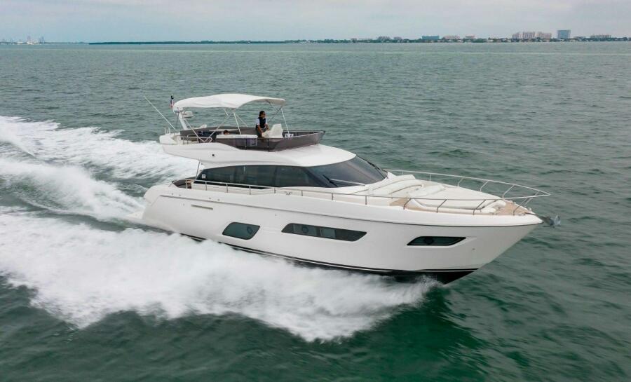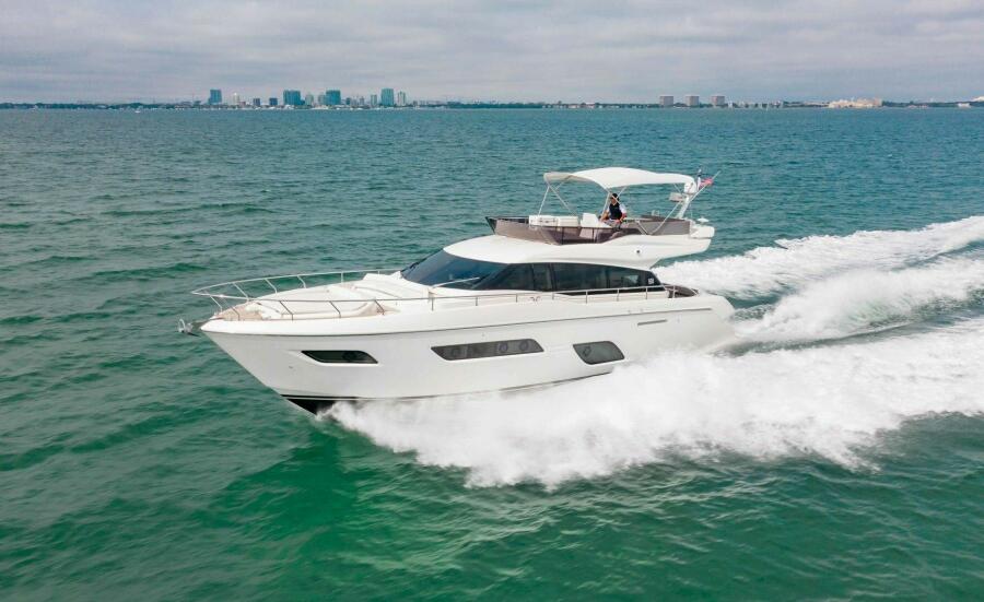 ACQUA is a beautiful, 55 Ferretti. The yacht has been maintained by a full-time captain and the attention to detail shows. This 55 has the upgraded 800 MAN Diesels, cruising at a comfortable 26 knots.