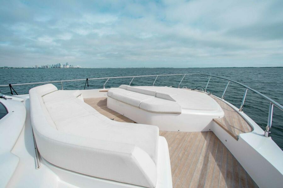 ACQUA accommodates six guests in three spacious staterooms. The yacht has a “just like home feel” with a comfortable sofa, tasteful interior color and soft goods. The outside boasts multiple lounge areas, flybridge and foredeck. The yacht also has an upgraded JL Audio system throughout the vessel, excellent for entertaining family and friends.