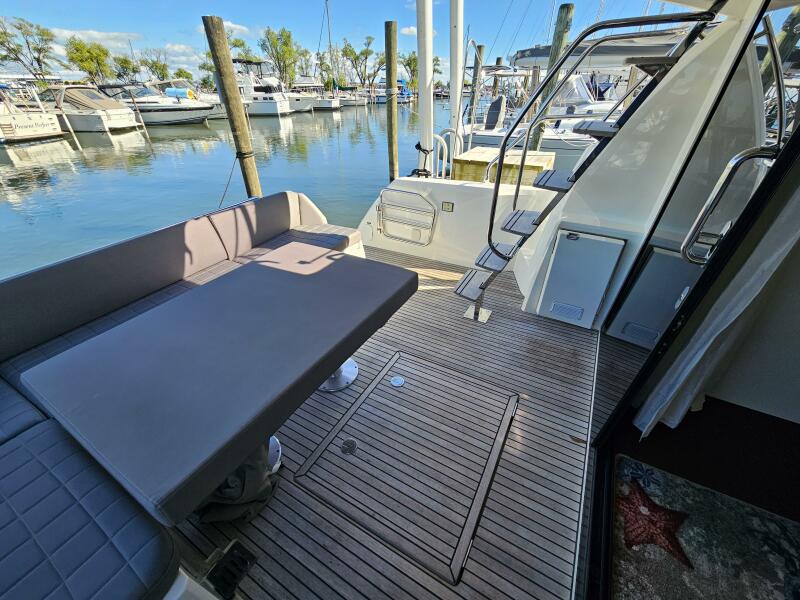 Powered by twin Volvo IPS 600s with joystick control, the 460 FLY offers excellent handling, fuel efficiency, and ease of docking. The layout includes a spacious flybridge with lounge seating and wet bar, aft galley, and a full-beam master stateroom with private head, plus a well-appointed forward guest cabin.