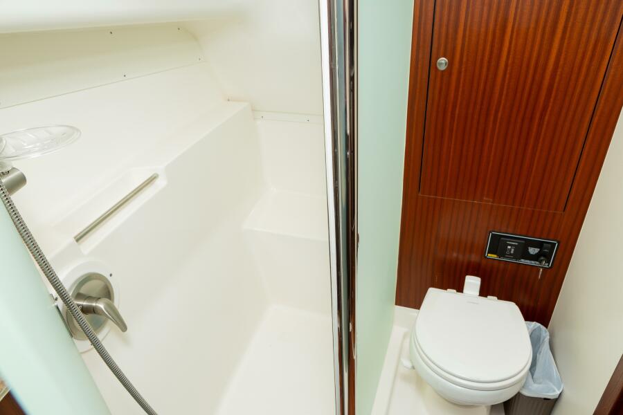 The OS385 offers efficiency & performance with the reliability and durability of Yamaha Outboards. Relax in the climate-controlled helm with a separate helm air conditioner, complete suite of Garmin electronics, full windshield, and comfortable lounge to port. The 13’ beam delivers a spacious cabin offering full galley, ample fridge/freezer space, 2 full berths, dry head, and plenty of cockpit for fishing or cruising.