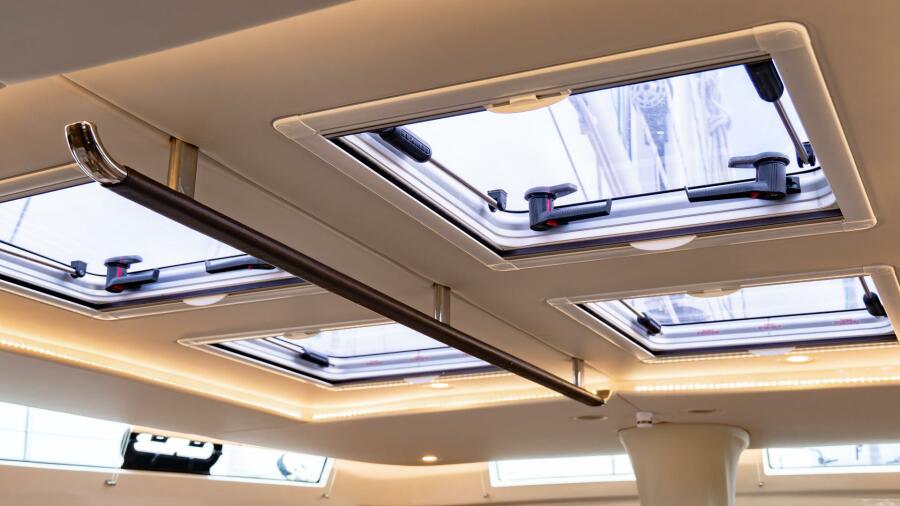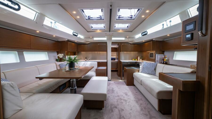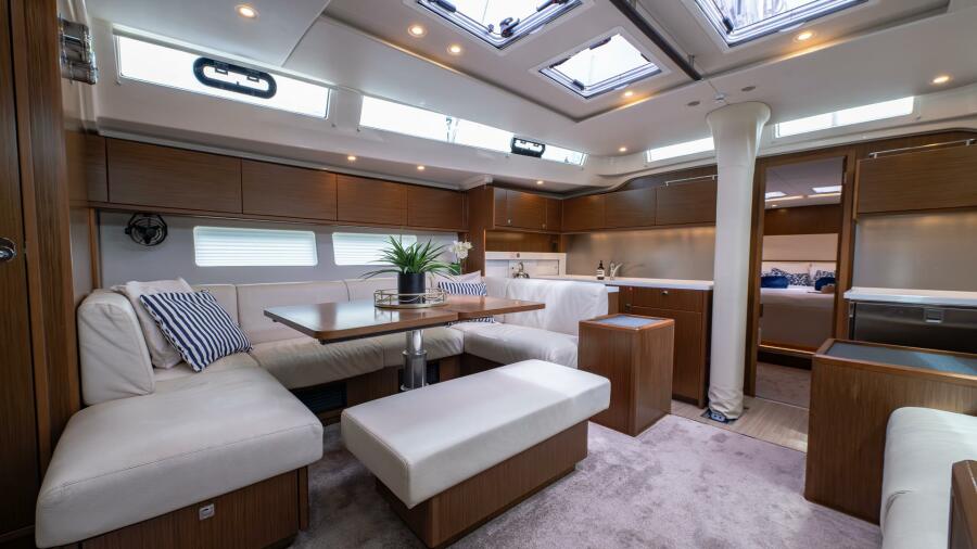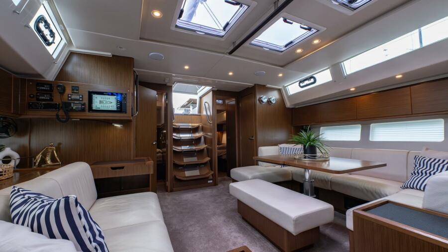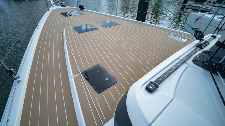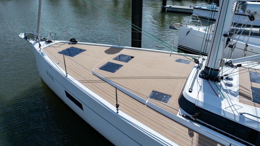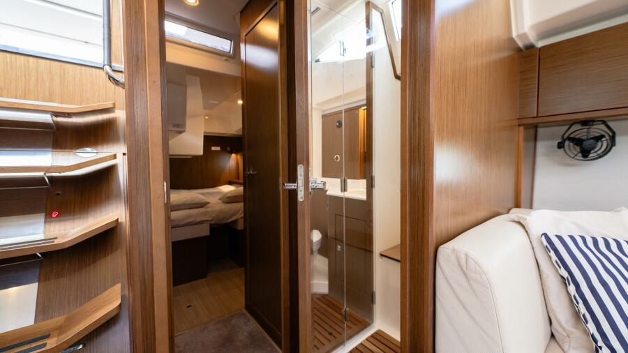 The two aft cabins each have large doubles with an ensuite to port, while the starboard side features a flexible bunk room ideal as a fourth cabin or storage. Performance-wise, Nixie’s 2.5-metre deep draft keel and North 3Di sails deliver excellent cruising speed. All sail controls, including electric Lewmar winches, furling mainsail, self-tacking jib and Code 0, are managed from the cockpit for effortless sailing.