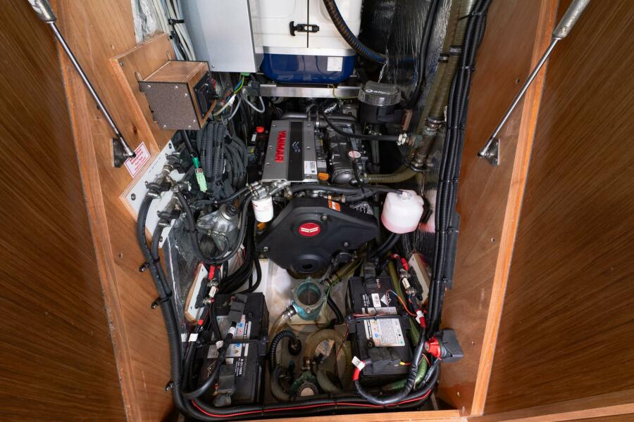 Additional features include an upgraded Yanmar 4JH110 engine, bow and stern thrusters, solar panels, washing machine, two sets of sails and an Ultra 45kg anchor.