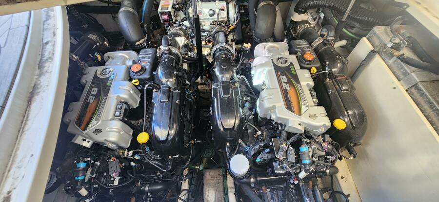 New to the market is this well kept, low hour 2019 Sea Ray 350 Sundancer Coupe powered by twin fresh water cooled 8.2 Mercruiser V-Drive inboards with only 284 hours. Vessel features Brunswick Platinum Plus Warranty through 2027. Notable features include generator, joystick and bow thruster control, cockpit air conditioning, power sunroof, teak cockpit and so much more! If you are on the hunt for a late model, sleek express cruiser, be sure to get aboard "Love!"