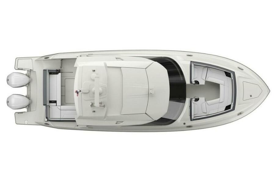 The 34 LX Luxury Crossover provides comfortable bow rider seating accessed via a centerline pass thru. An accommodating cockpit provides abundant seating for family and friends while the transformational aft seat offers the ability to enlarge or reduce the cockpit size based on guest’s needs aboard. Smart storage allows space for beach and water gear as well as boat equipment. Sunroof and centerline passive ventilation system both offer fresh air throughout, adding comfort for Captain and guests aboard. Twin Yamaha 350’s provide power and performance both Captain and guests are sure to appreciate. Integrated electronics and Garmin® marine navigation systems complement the Yamaha engine package, providing intuitive and functional ease of use.