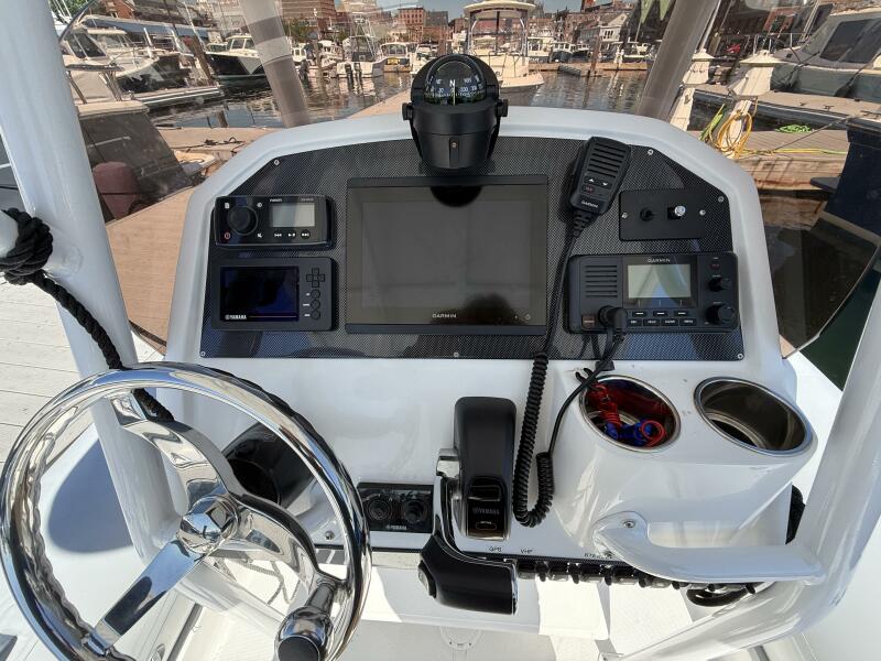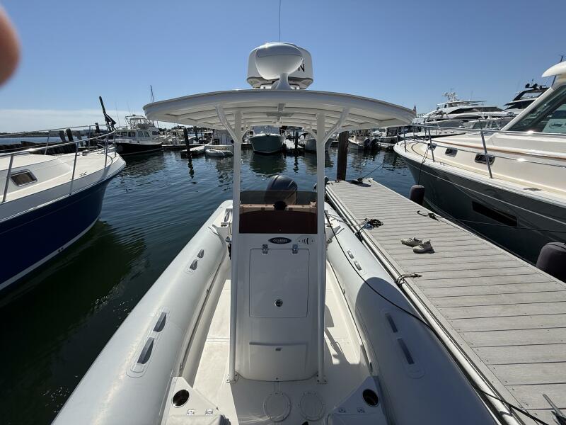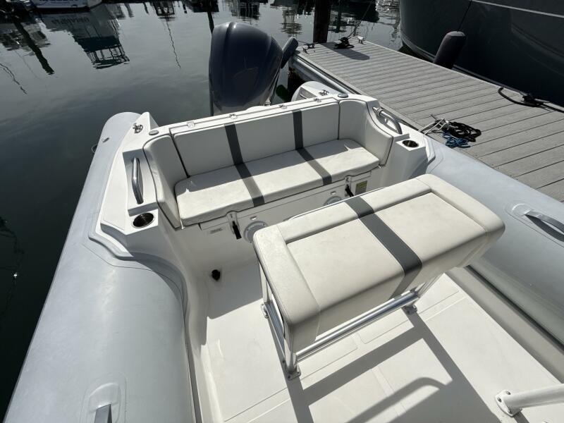 One standout feature is the custom hard top, offering enhanced protection from the sun and elements while maintaining the open-air experience RIBs are known for. The layout provides ample seating and storage, making it as functional as it is fun.
