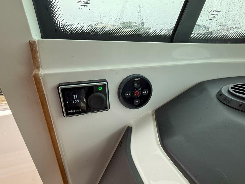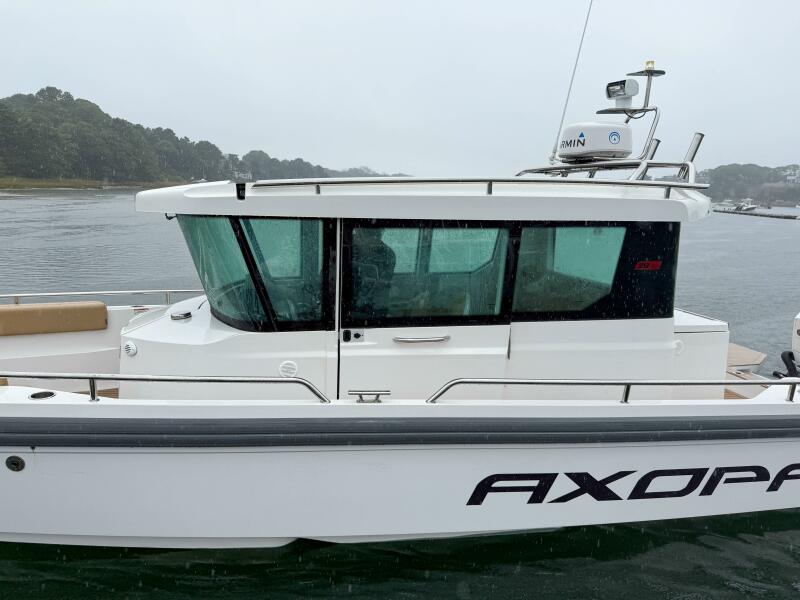 The Axopar 28 Cabin is well-known for her excellent performance and sea keeping ability in inclement weather. Enjoy the comforts of your SUV while on the water inside the protected cabin: warm, dry and comfortable with the diesel heater running or open the side doors and sunroof when the weather is nice and the boat becomes an open center console.