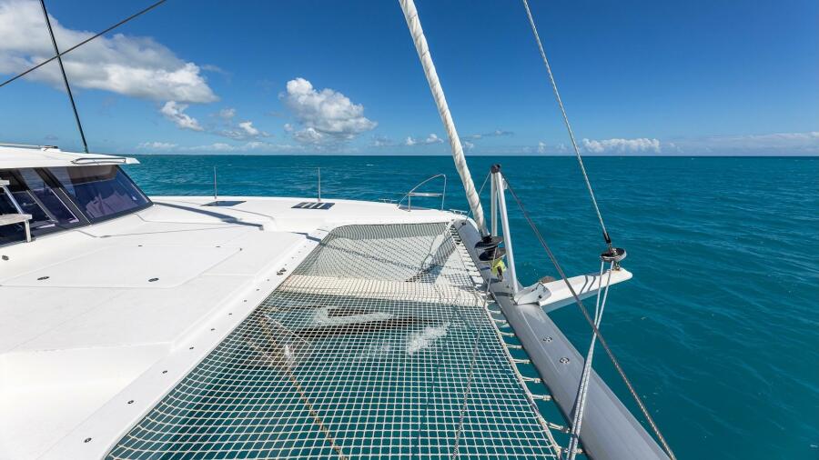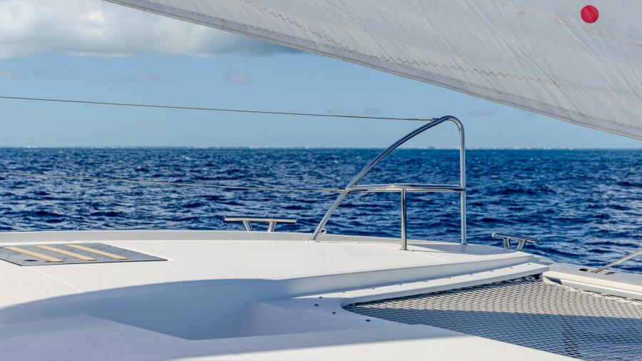 • Heavily reinforced bowsprit with rigging gear to fly gennaker/screechers
