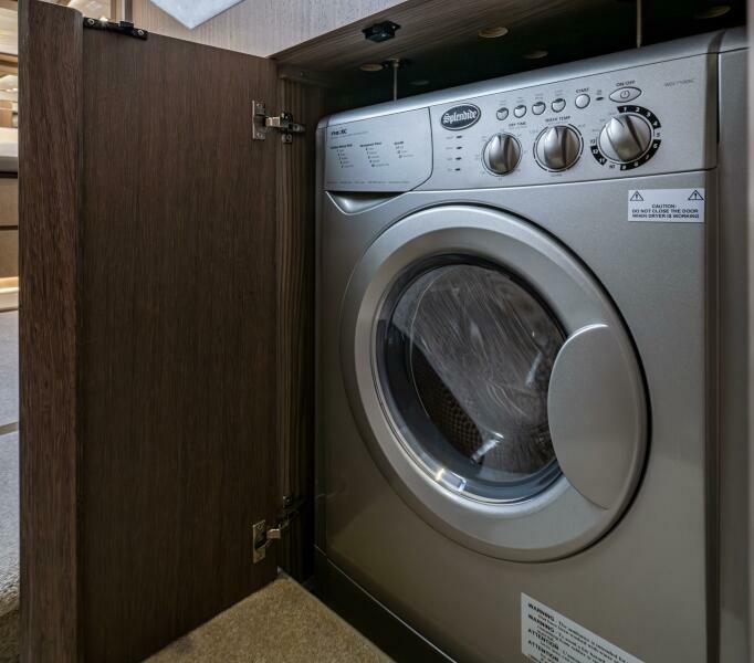 The forward VIP cabin has an en suite bathroom while the owners cabin is fitted with a make-up station and a comfortable lounge. Both bathrooms hold separate shower cabins and a clever solution with twin sliding beds can be found in the guest cabin. All quarters offer privacy and sufficient headroom.