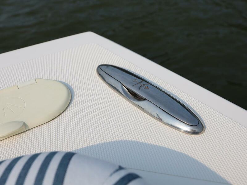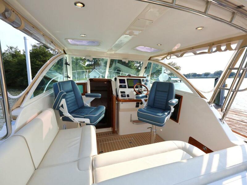 Lift-kept in season and indoor-stored in the off-season and it shows! Tastefully appointed and color coordinated with upgraded fabrics and features throughout, BONHEUR is a “looker” and a performer with that classic Hunt appeal; never trendy, endurably in style since conceived to tackle the rough waters of Buzzards Bay over sixty-five years ago. Notable options include: custom lower profile helm console; Awlgrip painted hull; additional companion XR pedestal chairs; upgraded motors; Express Hardtop; synthetic ‘teak’ decks with off-white seams; Sunbrella cockpit L-settee cushions; varnished teak toe rail with pop-up chalks - just to name a few of the thoughtful optional touches.