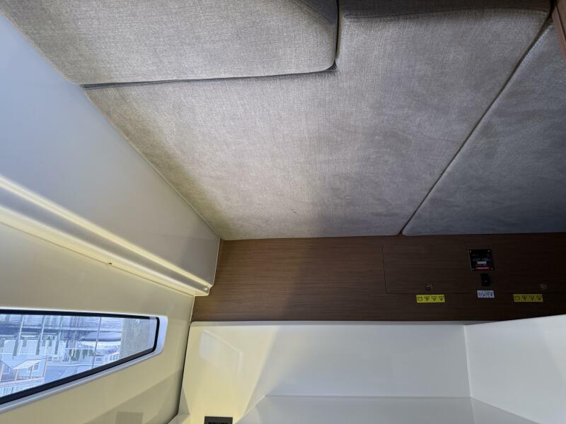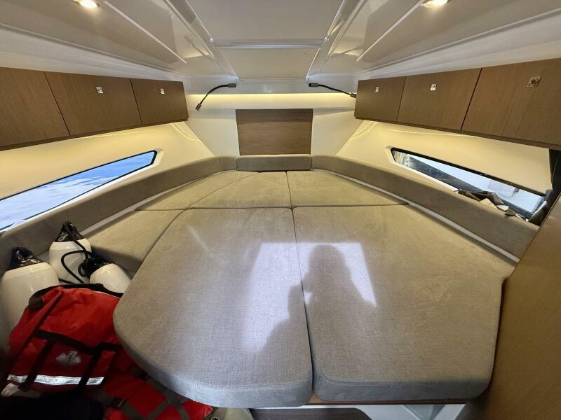 Two separate cabins, one galley and a cleverly fitted shower room make the Antares 9 the ideal boat for cruises with family and friends! With wraparound windows, the pilothouse has a panoramic view and is incredibly bright. There is a real feeling of space and the lounge is cleverly organized with a co-pilot seat that swings round. This means you can sit facing the sea or facing the chart table.