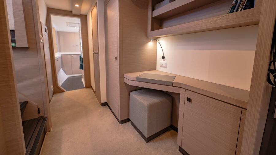 Equipped with a comprehensive Garmin electronics package, including two chart plotters, and fitted with both a gennaker and parasail, Side Track offers versatile and enjoyable sail handling. Onboard comfort is assured with a genset, watermaker, and a 900Ah lithium battery upgrade supported by 1,200W of solar power.