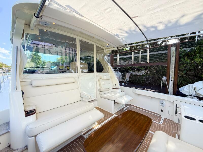 • Powered SureShade awning covering cockpit and aft seating
