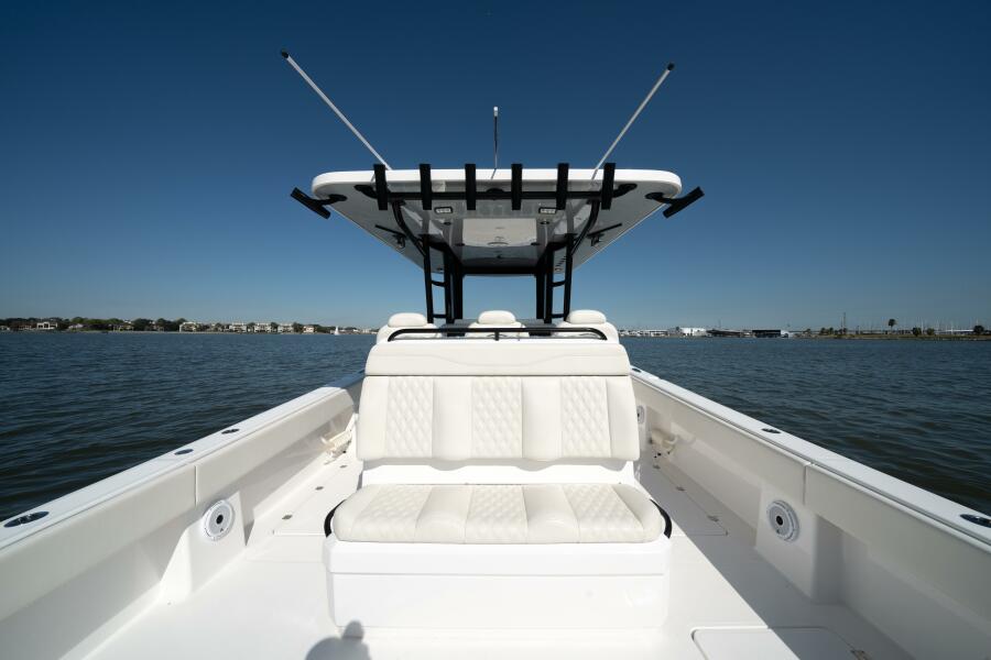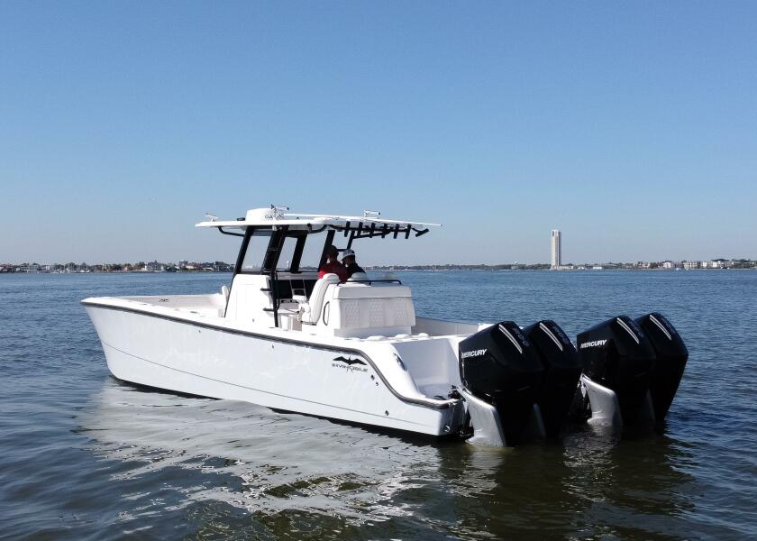 The 2021 Invincible 35 Catamaran is a high-performance offshore fishing boat known for its speed, stability, and smooth ride in rough seas. Powered by quad Mercury 300 HP engines, it can reach impressive top speeds while maintaining excellent fuel efficiency. Its twin-stepped hull design by Morrelli & Melvin provides exceptional handling and balance, even at high speeds. The spacious deck layout offers ample fishing space, storage, and livewells, making it ideal for serious anglers. Inside, premium finishes and advanced Garmin electronics make the 35 Cat both luxurious and highly functional for offshore adventures.