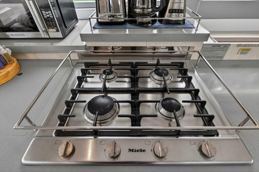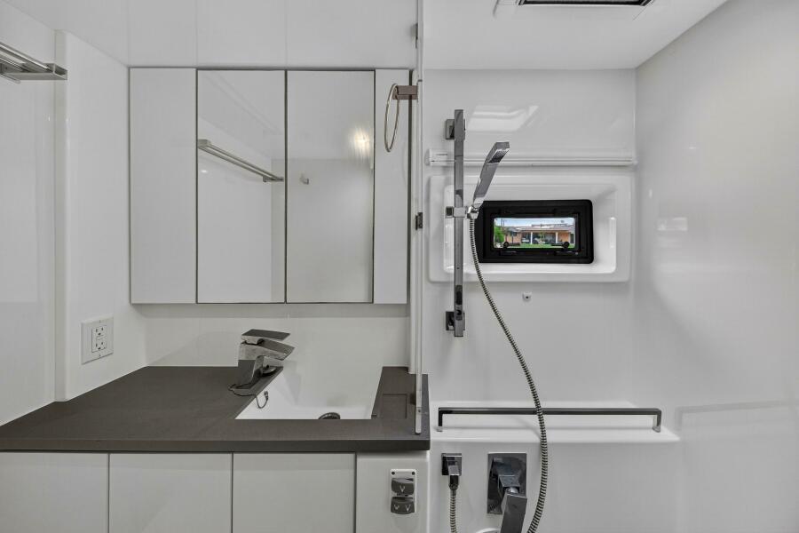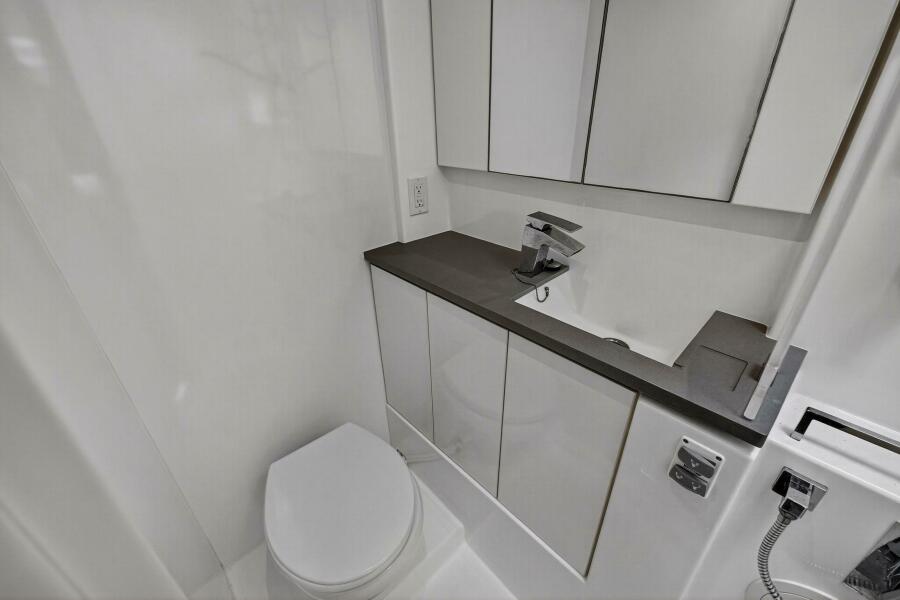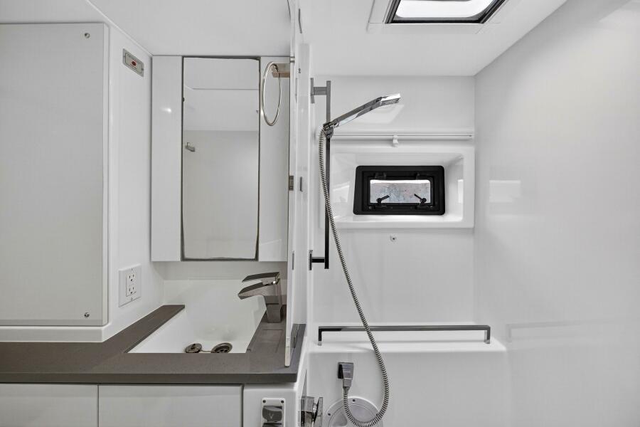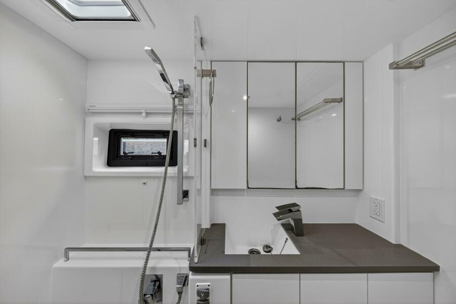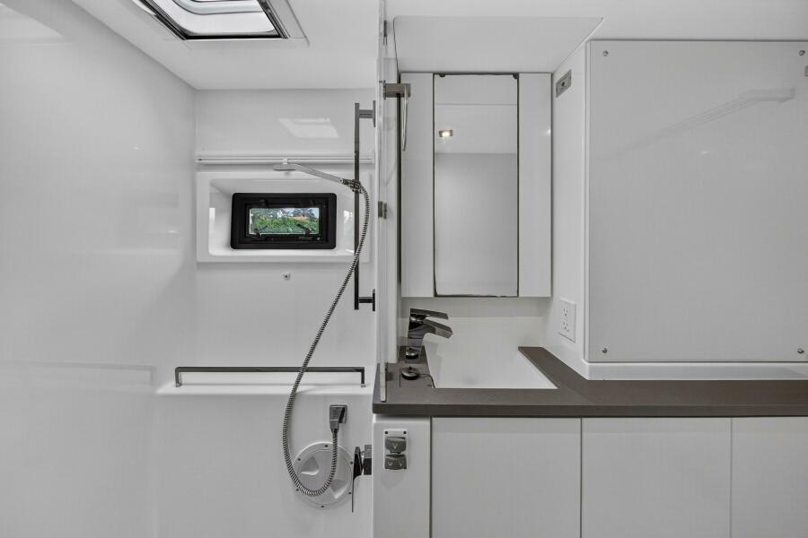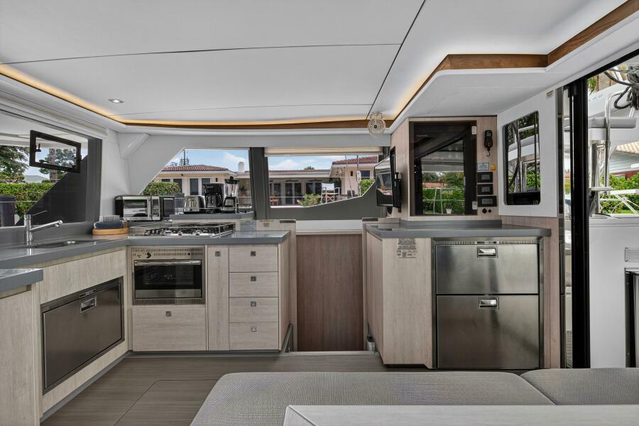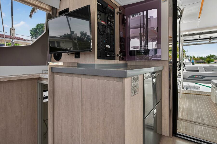- Upgraded refrigeration includes standard fridge / freezer combo with additional fridges under sink and aft cockpit