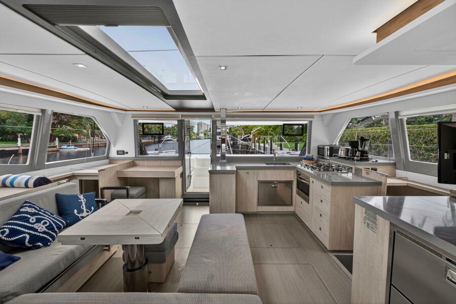 In summary, the Leopard 45 Sailing Catamaran delivers uncompromised, exceptional build quality throughout, new, sleek styling, a sensible and practical layout, sailing comfort across all sea states, and features innovative technologies and multiple entertainment areas.