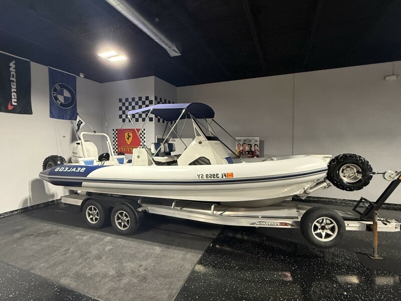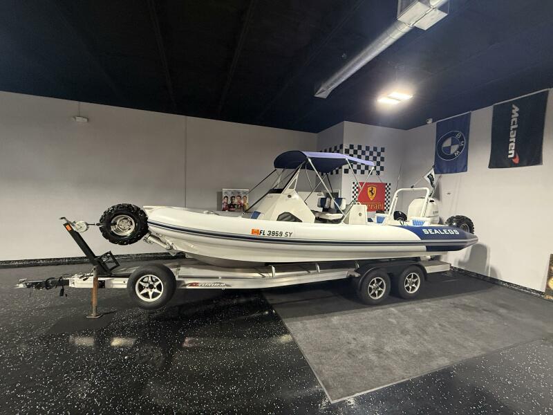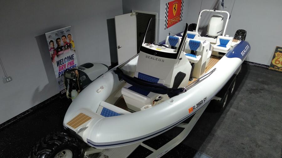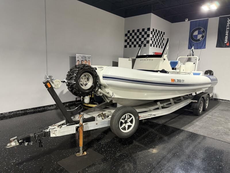 This 2021 Sealegs 7.5 Hydrasol RIB has been stored in an air-conditioned garage since custom ordered, and shows as well as the day she was delivered! The 200hp Yamaha has minimal usage at 45 hours, and with the included custom drive on trailer, this Sealegs is a worth a closer look for those planning to buy new.