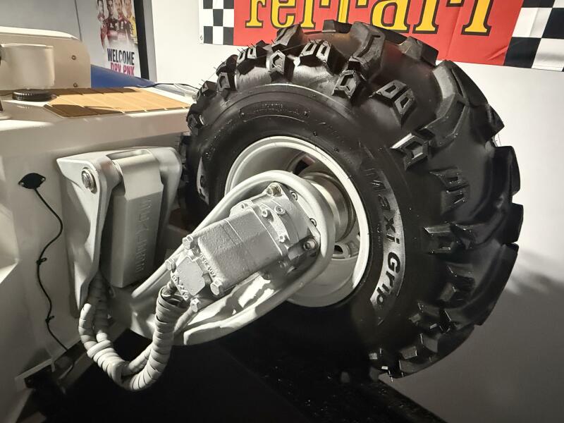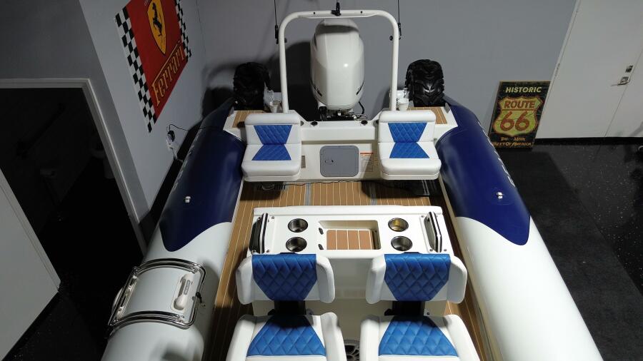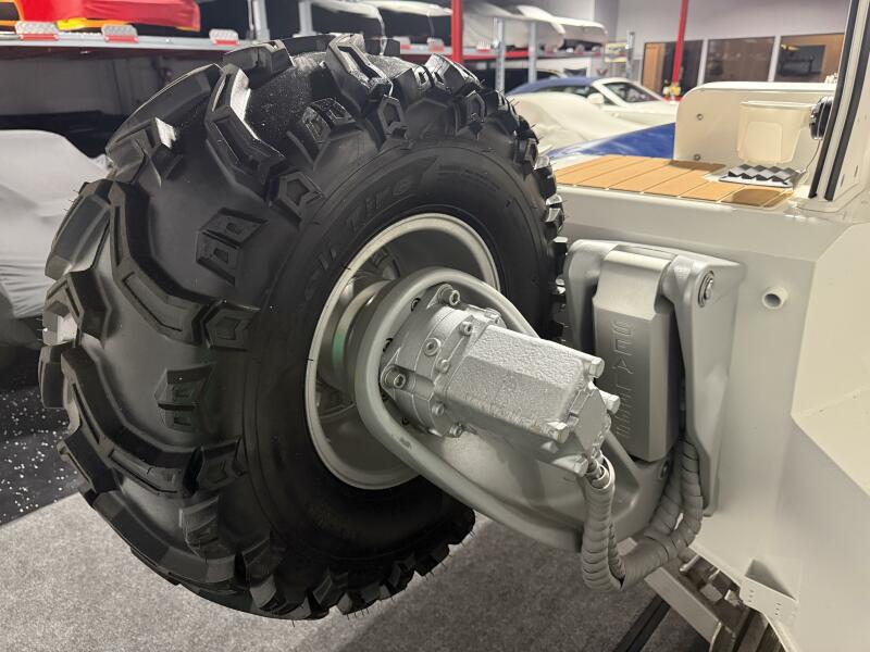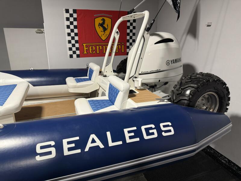 Ordered by a repeat Sealegs owner, this vessel is well equipped with the All-Round layout package, Premier Accent upgrade with blue throughout, and “Xtended Runtime” for longer amphibious activities.