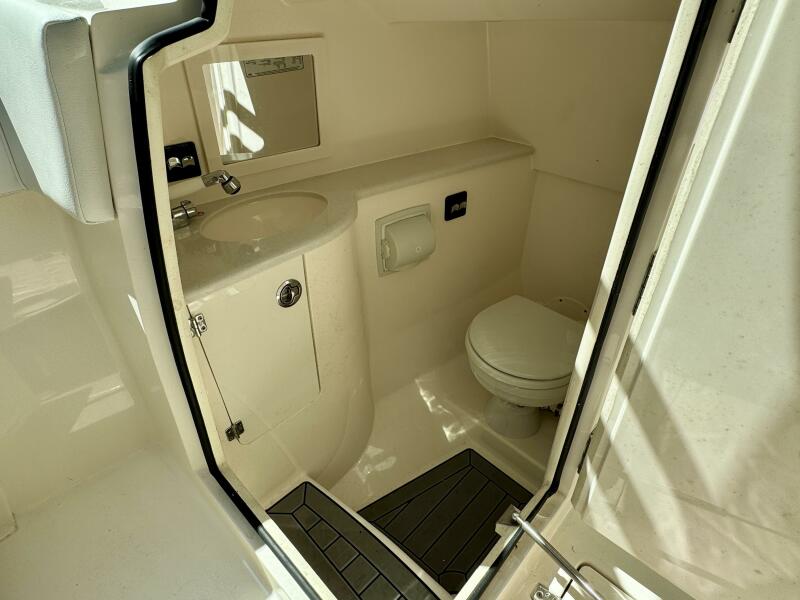 Walk-Down Head Compartment w/Electric Macerator Head, Corian Countertop, Sink, Mirror, & Toilet Paper Holder,