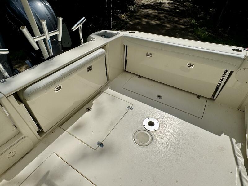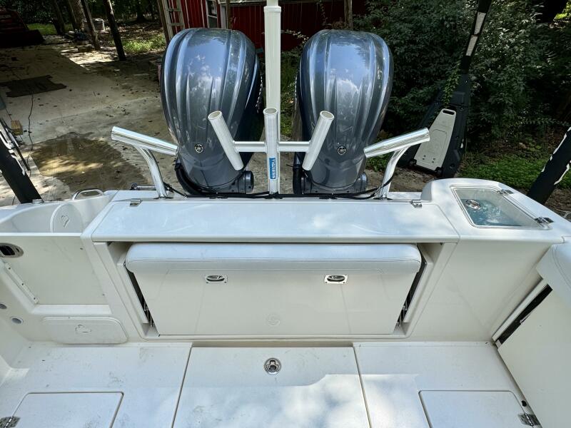 Push-Button Electric Full Cockpit SunShade, Forward/Rear Spreader Lights, (6)Hard-Top Mounted Rod Holders, (5)Transom Rod Holders, (3)Removable Rocket Launchers/Rod Holders, (3)Rod Under-Gunnel Storage (Starboard),