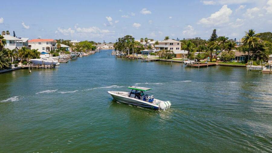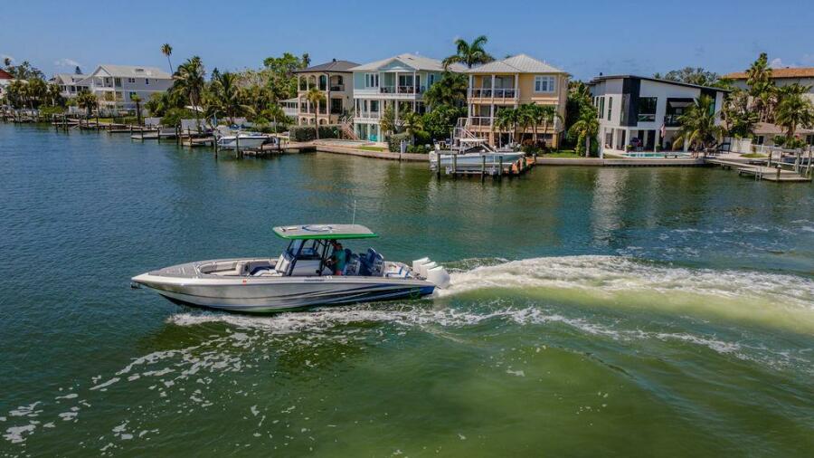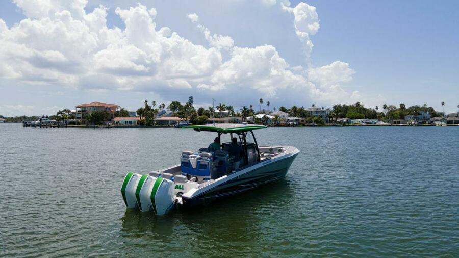 This particular 2022 model is powered by triple Mercury Verado 300s (only 141 hours) and loaded with premium options, including a full Garmin electronics suite, JL Audio sound system, and a stylish fiberglass T-top. Whether your passion is offshore fishing, sandbar lounging, or high-speed cruising, the 34SC delivers performance and versatility without compromise.